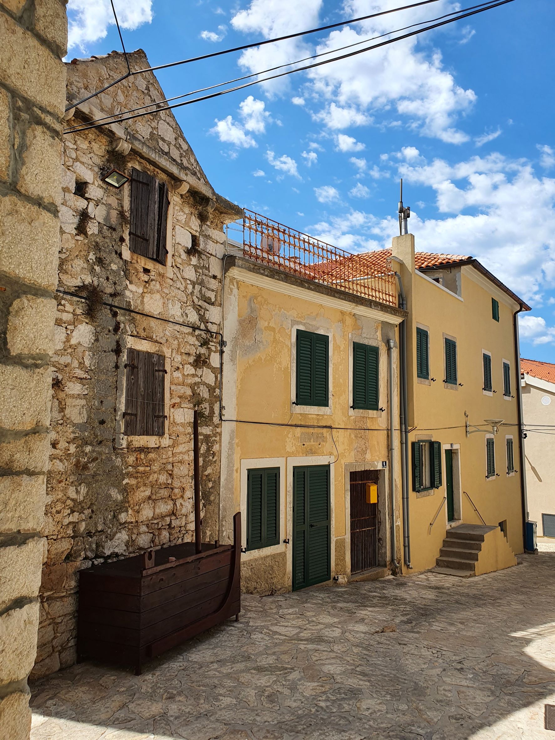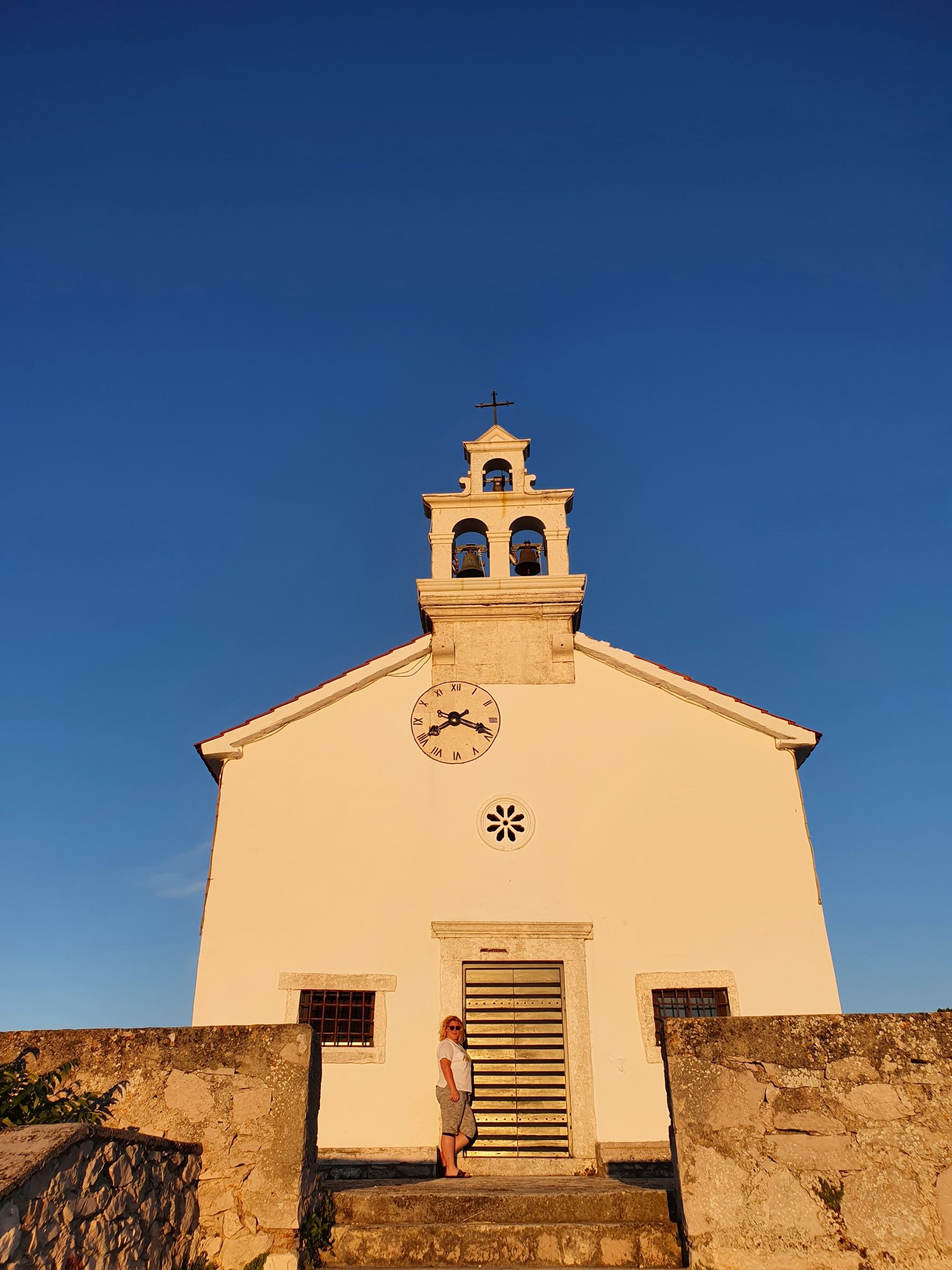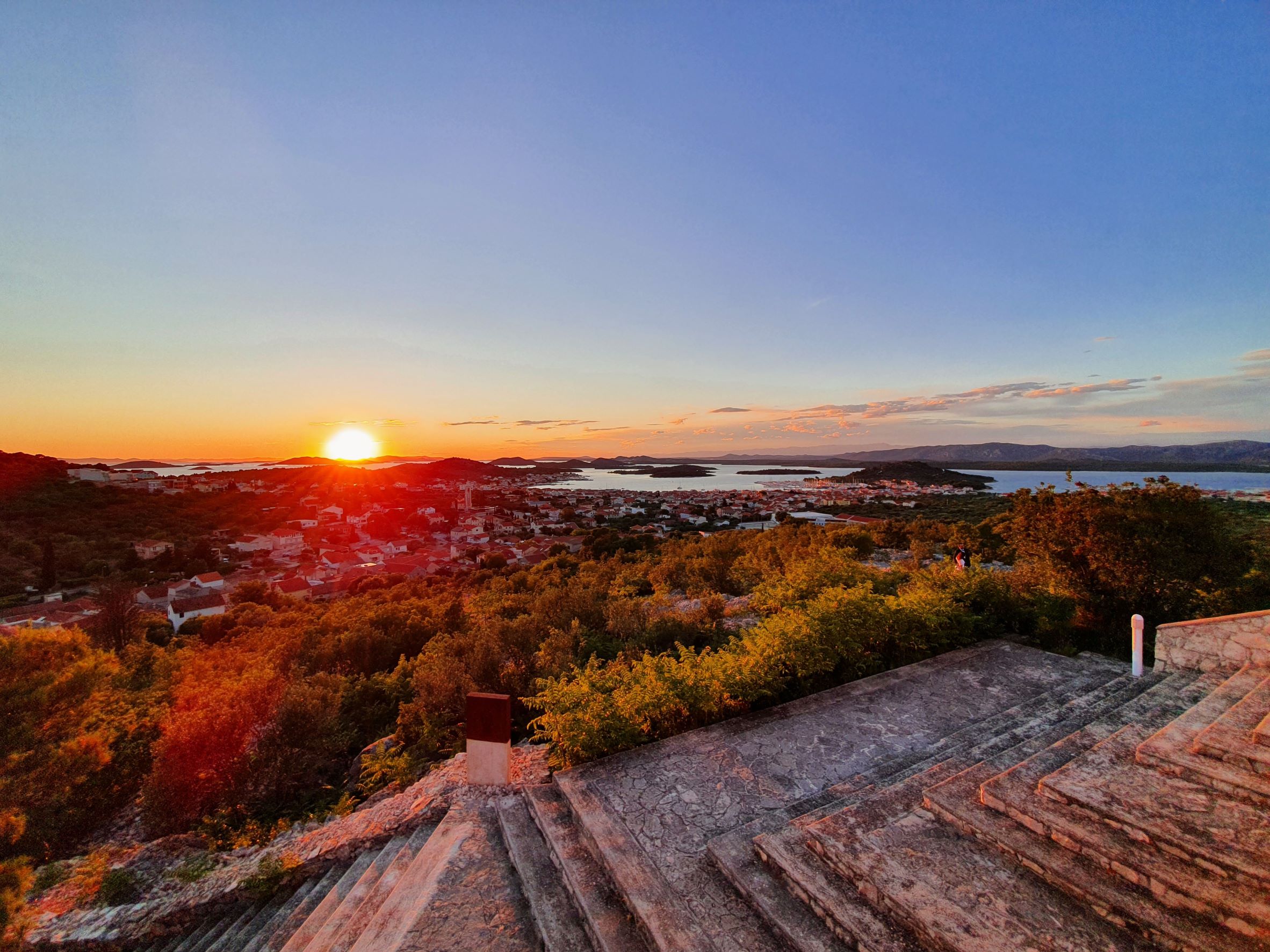 Po výdatných raňajkách smerujeme do romantickej dediny Betina, ktorá nás zaujala už pri príchode, po ceste k apartmánu. Keď totiž prichádzate do mesta Murter, Betinu pod sebou na pobreží neprehliadnete vďaka jej ikonickému kostolu. Hneď vedľa pláže s názvom Betina sa nachádza priestranné verejné parkovisko. Hodina parkovania tu stojí 7HKR (1€), takže parkujeme a vyrážame do ulíc. Teda skôr uličiek. Už z pláže Betina sa nám naskytá nádherný výhľad na dedinu Betina a jej ikonický kostol Sv. Frane, ku ktorému mierime. Mierime k nemu, pretože je odtiaľ krásny výhľad na mesto a my výhľady zbožňujeme. Betina má okrem kostola dva nádherné prístavy, v ktorých nie je núdza o dobrú kávu alebo pivko a k tomu všetkému nádherné a tiché, starobylé uličky. No romantika po Chorvátsky. A čo by to bolo za romantiku pri mori, bez romantického západu slnka? Ostrov Murter má vďaka kopcom viacero zaujímavých miest, odkiaľ sa dá pozorovať západ slnka, no jedno miesto tomuto večernému divadlu dodáva obzvlášť šmrnc.
