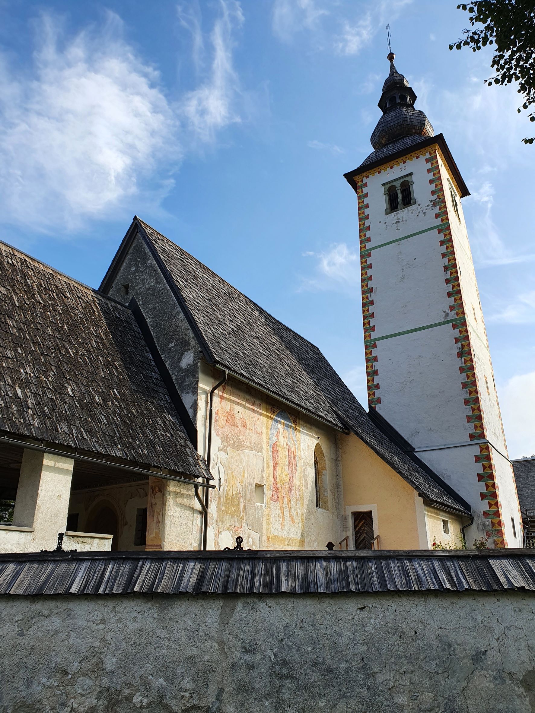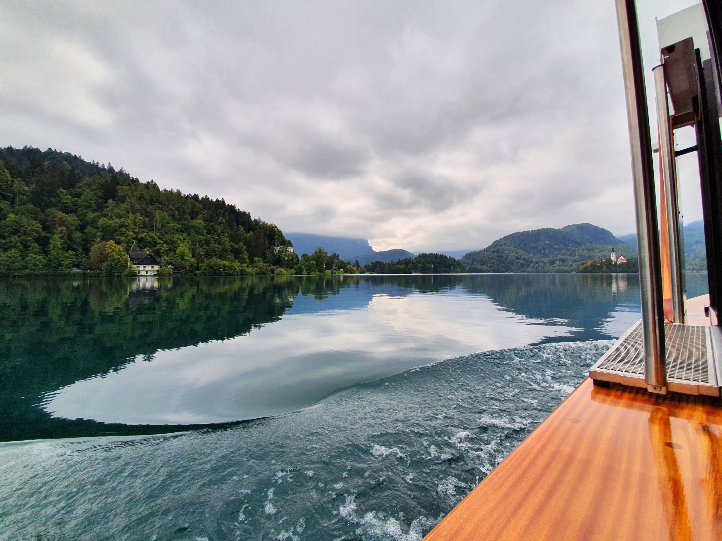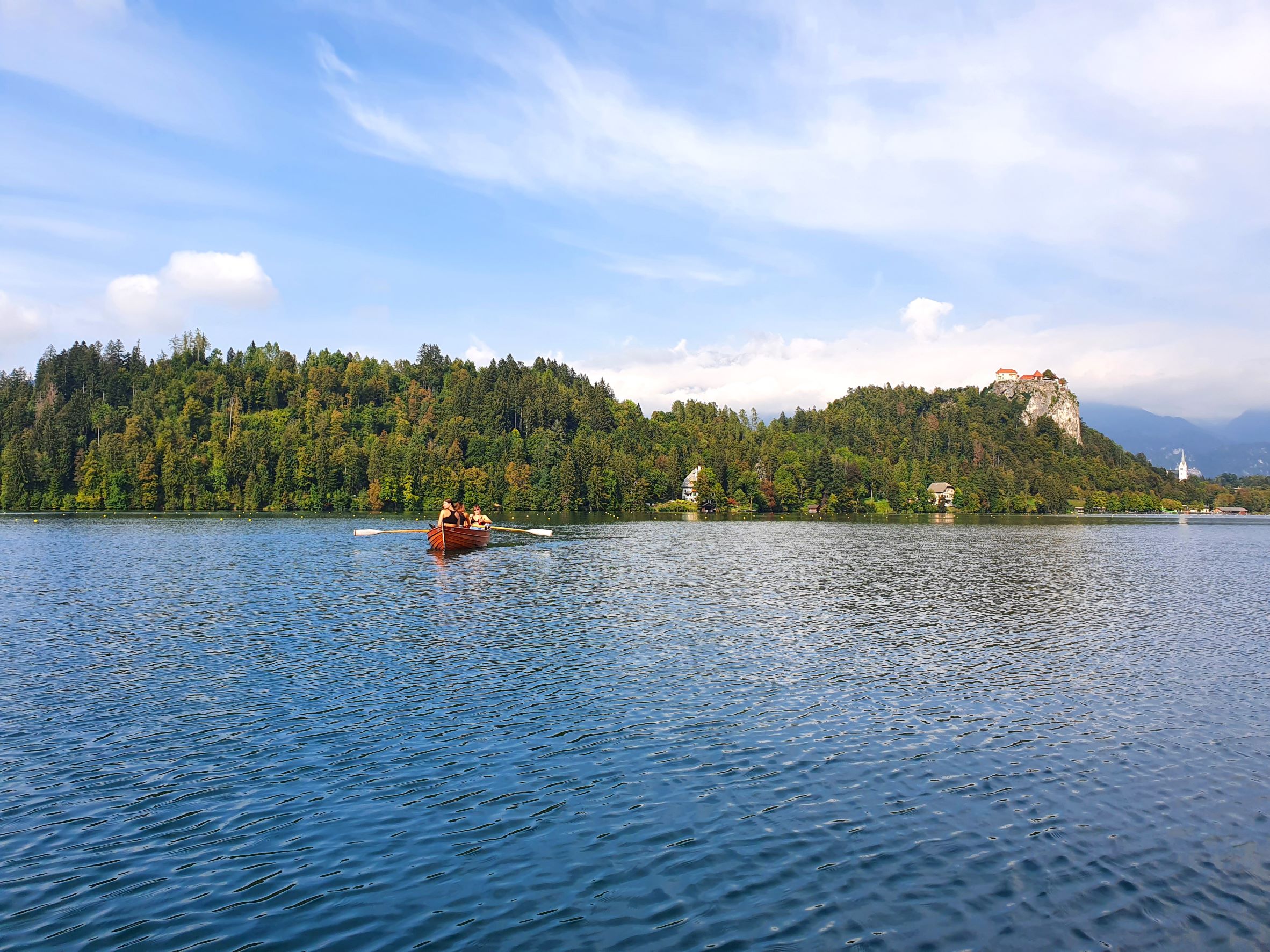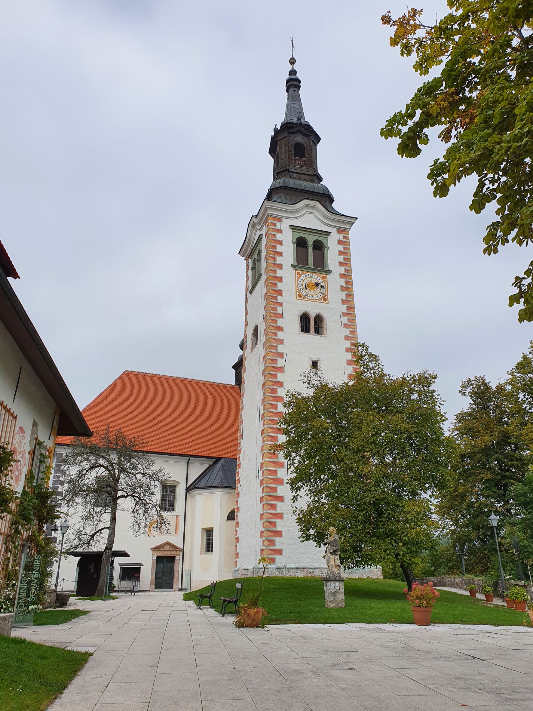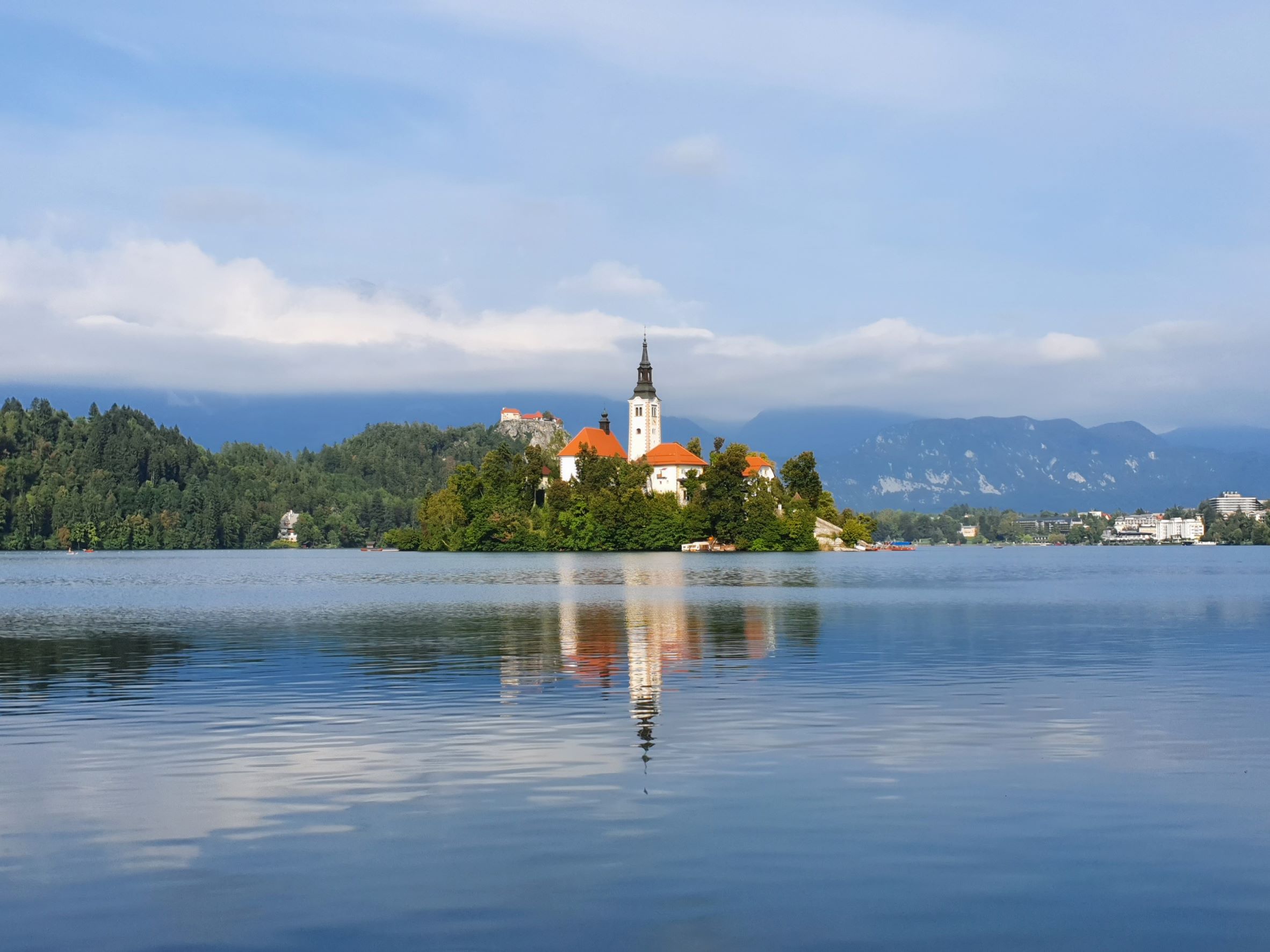 Jedným z viacerých atraktívnych miest, ktoré tu nájdete je určite Bledský ostrov uprostred jazera. Keďže jazero dosahuje v lete príjemné teploty, na Bledský ostrov sa môžete doplaviť napríklad na paddleboarde, prípadne tí skúsenejší a odvážnejší by naň možno aj preplávali. Najbežnejší spôsob, ako sa dostať na ikonický Bledský ostrov je ale loďka. Z brehov jazera vás na ostrov prepravia za približne 15€/os. obojsmerne. Samozrejme sme neodolali a vydali sme sa na krátku plavbu. Okolo celého ostrova vedie v jeho spodnej časti chodník, po ktorom sa dá celý ostrov obísť a nezaberie vám to viac ako 10 minút, také malé je toto miesto. Nám však kapitán lode oznámil, že sa späť vráti za dve hodiny a tak máme času oveľa viac ako sme pôvodne chceli. Uprostred ostrova sa nachádza ikonický kostol Cerkev Marijinega Vnebovzetja, kostolná hodinová veža a pár budov, v ktorých kedysi žilo pár mníchov. Na tomto mieste boli dokonalo izolovaný od okolitého sveta. Môžete si tu zakúpiť vstupenky a prezrieť si tak nádherný interiér kostola alebo vystúpať na vežu až k zvonu. Ak sa aj po vás vráti kapitán lode po dvoch hodinách a stále máte dostatok času, môžete si napríklad vychutnať skvelú kávu na terase kaviarne Potičnica alebo ochutnať skvelú domácu zmrzlinu. Vraj zmrzlina na tomto ostrove patrí medzi najchutnejšie v celom Slovinsku, čo môžeme iba potvrdiť. Bledský ostrov je skutočne miesto s dokonalým božským kľudom, ktorý sa tu zachoval dodnes. Mimochodom, vedeli ste, že toto je jediný prírodne vytvorený ostrov v Slovinsku?