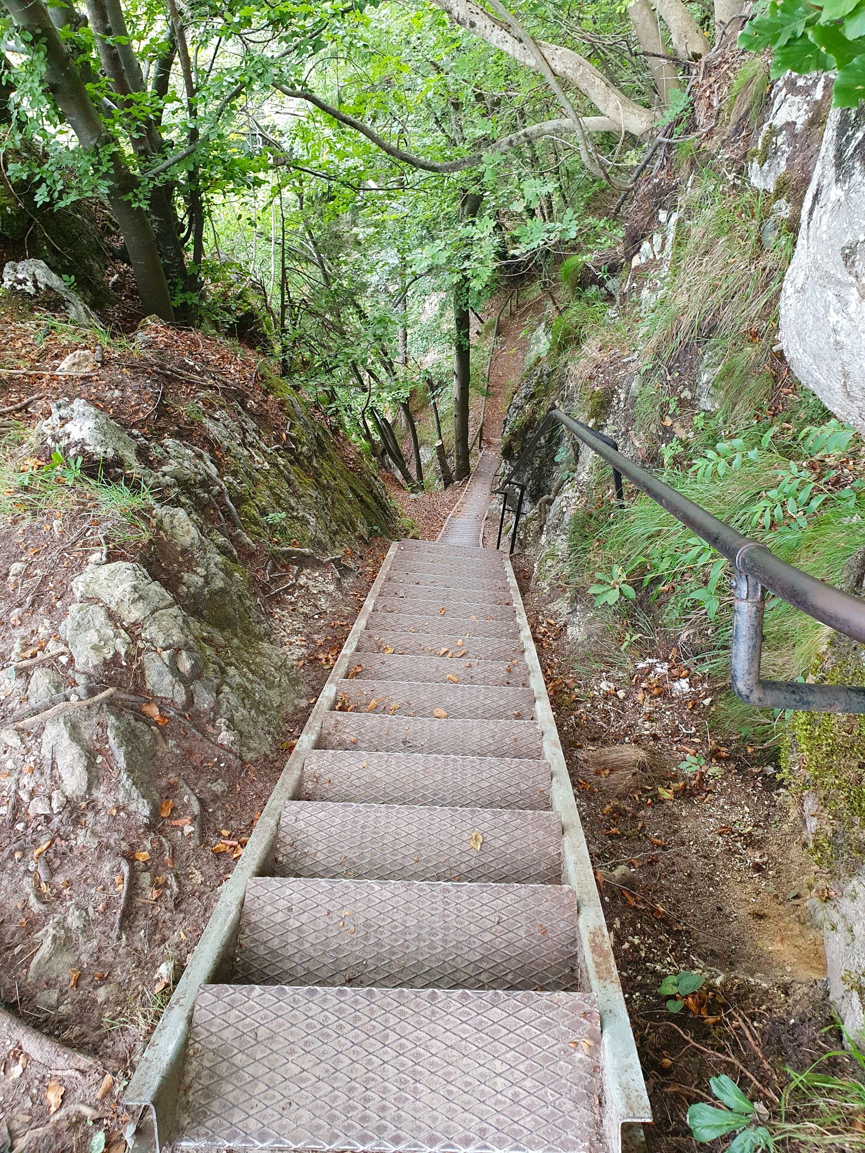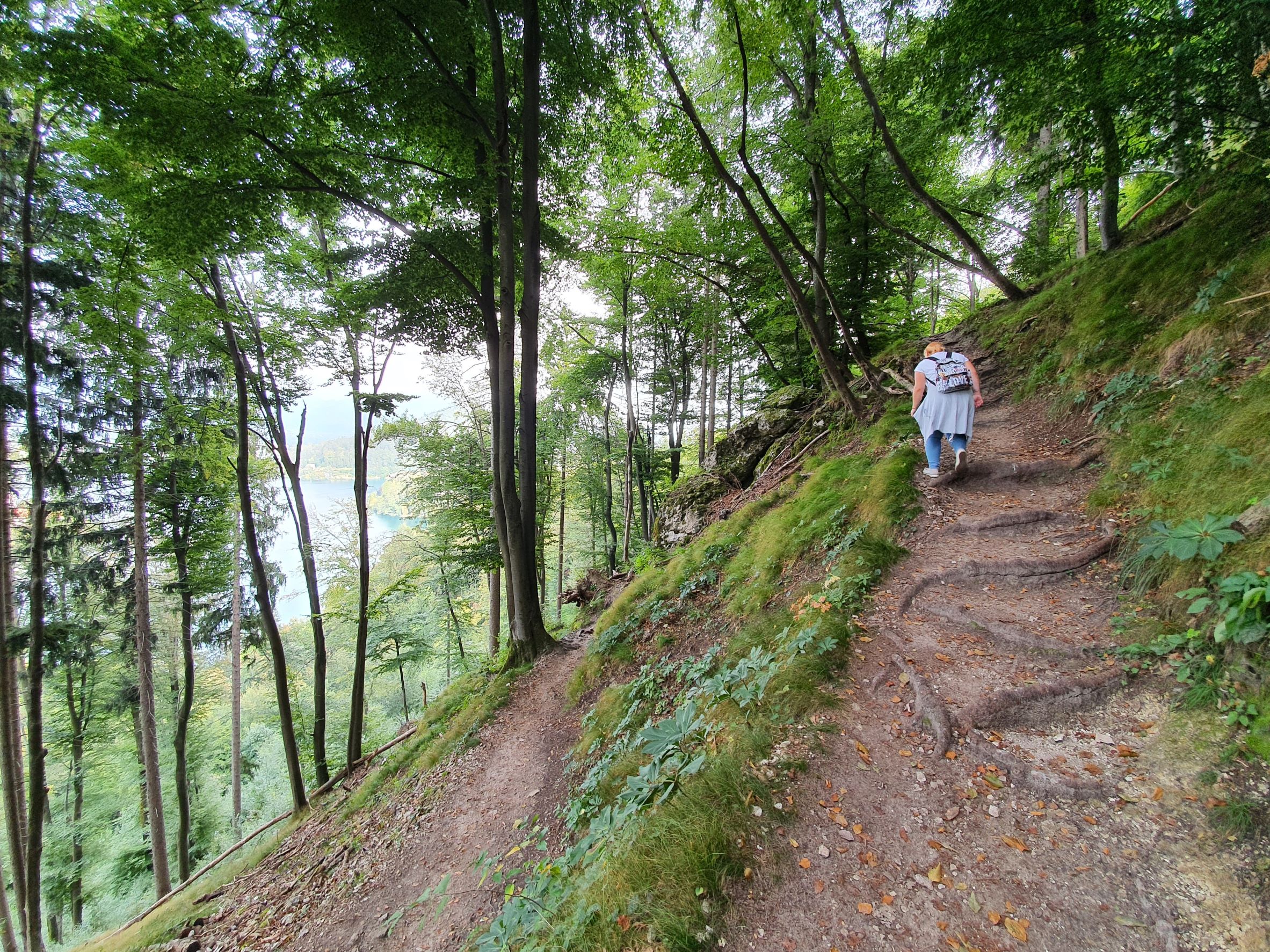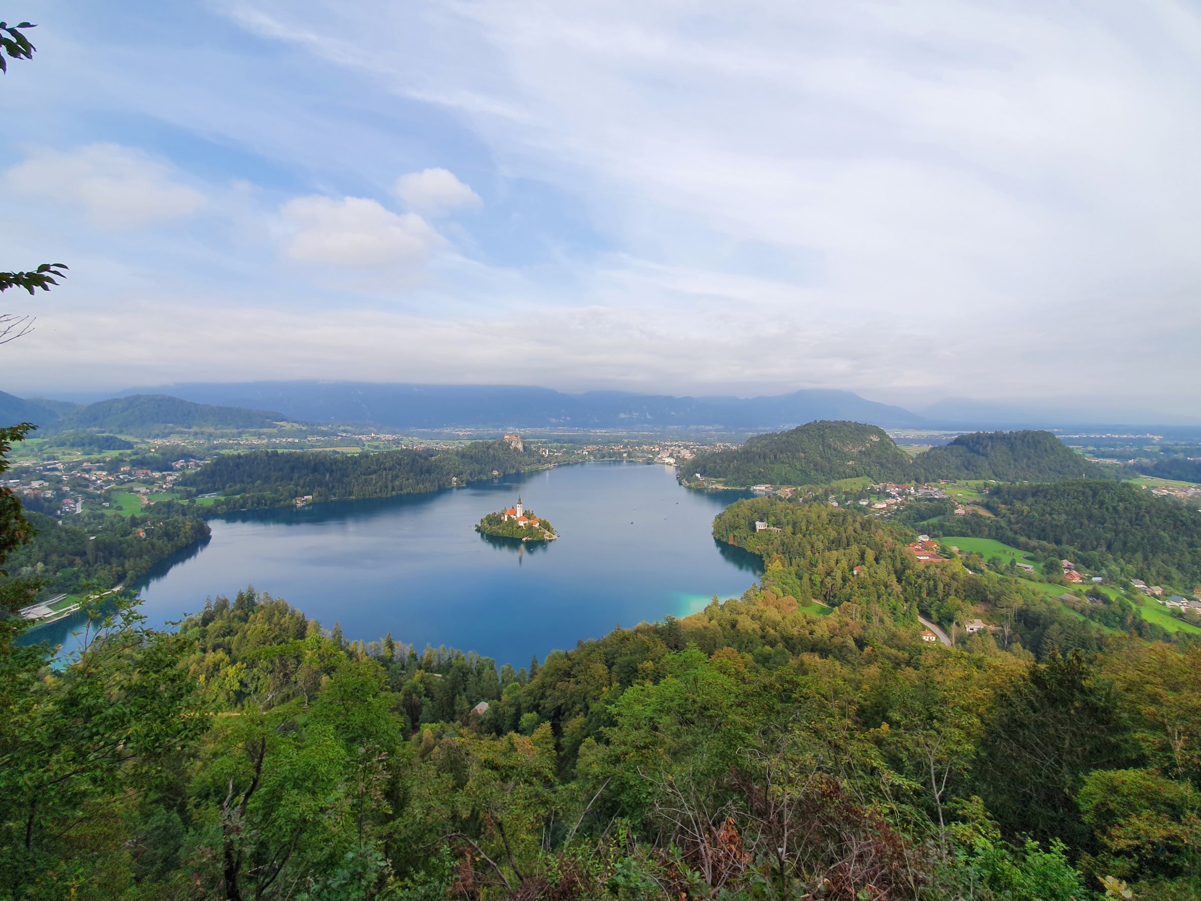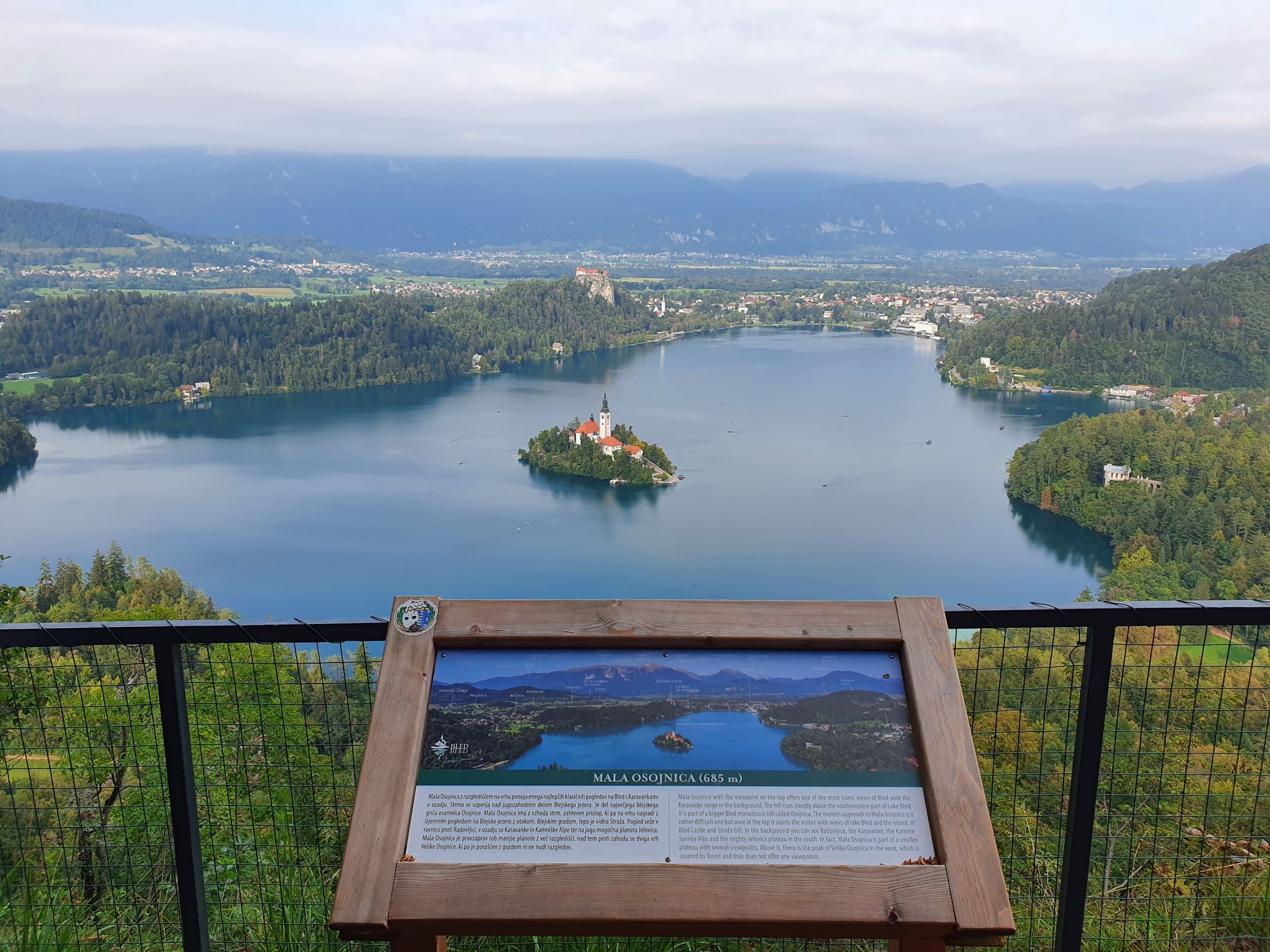 Už dole, pri asfaltovej ceste sa nachádzajú smerovačky na túry. Môžete sa vybrať buď na Malu Osojnicu, Veliku Osojnicu, alebo Ojstricu. Všetky tri sú nádherné vyhliadky na jazero Bled, pričom výstup na Malu Osojnicu trvá najkratšie, konkrétne necelú pol hodinku pomerne strmšieho stúpania. Velika Osojnica a Ojstrica sú ešte o 20- 30 minút ďalej, respektíve vyššie. Nám skrz čas a blížiaci sa večer najviac vyhovovala najkratšia, Mala Osojnica a tak sme vyrazili. Prvé 2 minúty vyzerala lesná cesta veľmi prijateľsky. Neskôr, po asi desiatich minútach lapania po dychu sme si uvedomili, že naša turistická obuv ostala v aute a neostáva nám nič iné, ako vyjsť na Malu Osojnicu tradične v žabkách. Kľukatá cesta strminou nahor, laná a reťaze vedľa zradného útesu, šmykľavé adrenalínové schody a šmykľavé korene pod nohami, asi tak by sa dala nazvať cesta za perfektnými výhľadmi. Každopádne, keď máte dostatok odhodlania vidieť nádhernú krajinu zhora, dokážete to aj v žabkách. Na vrchu je lavička, kde môžete nerušene pozorovať jazero Bled a jeho okolie. Tie výhľady a pokoj sú na nezaplatenie! A keď sme Malu Osojnicu zvládli my v žabkách, zvládne ju určite každý. Po takomto výdatnom dni plnom výhľadov si snáď každý zaslúži dokonalý odpočinok.