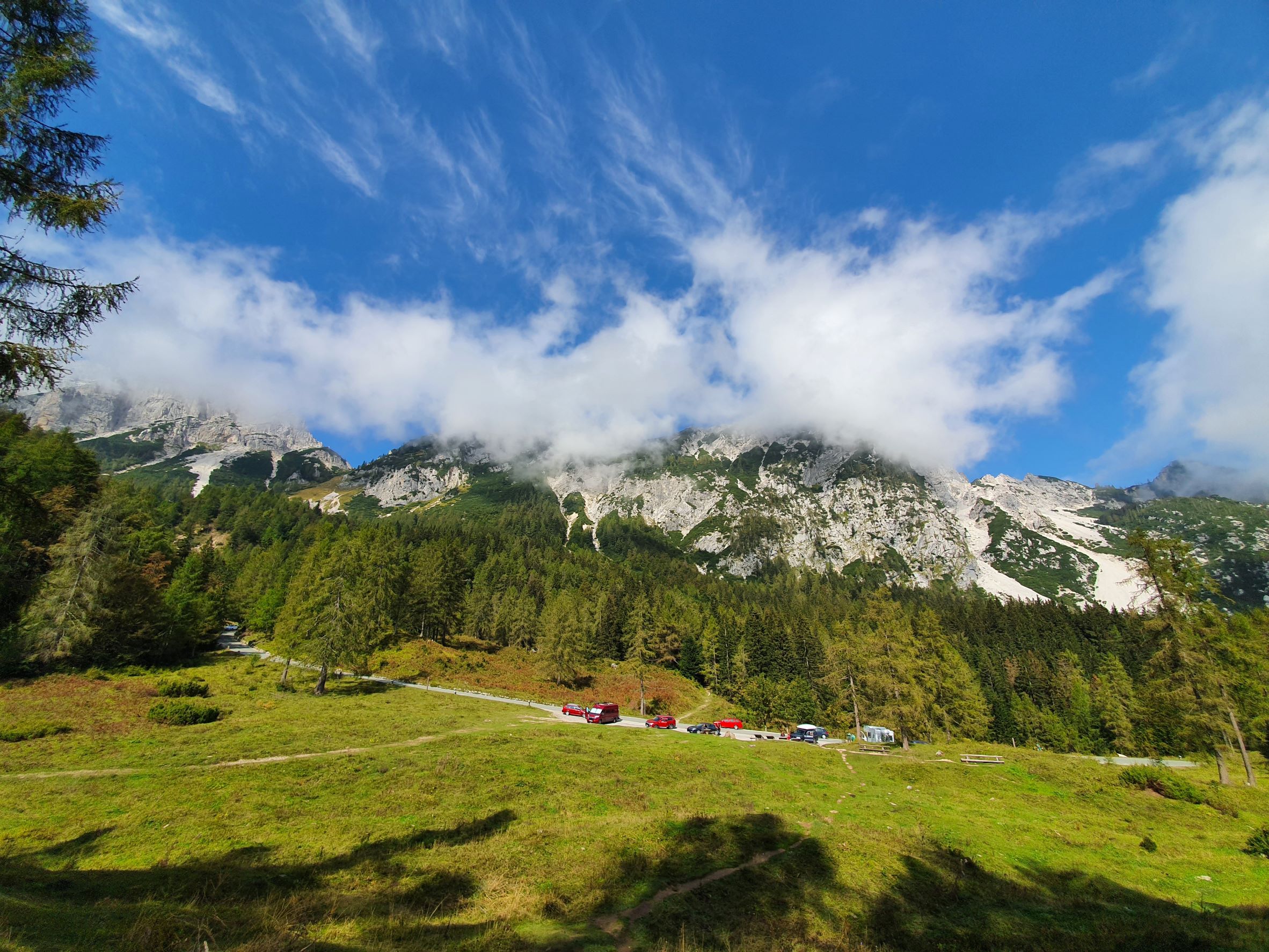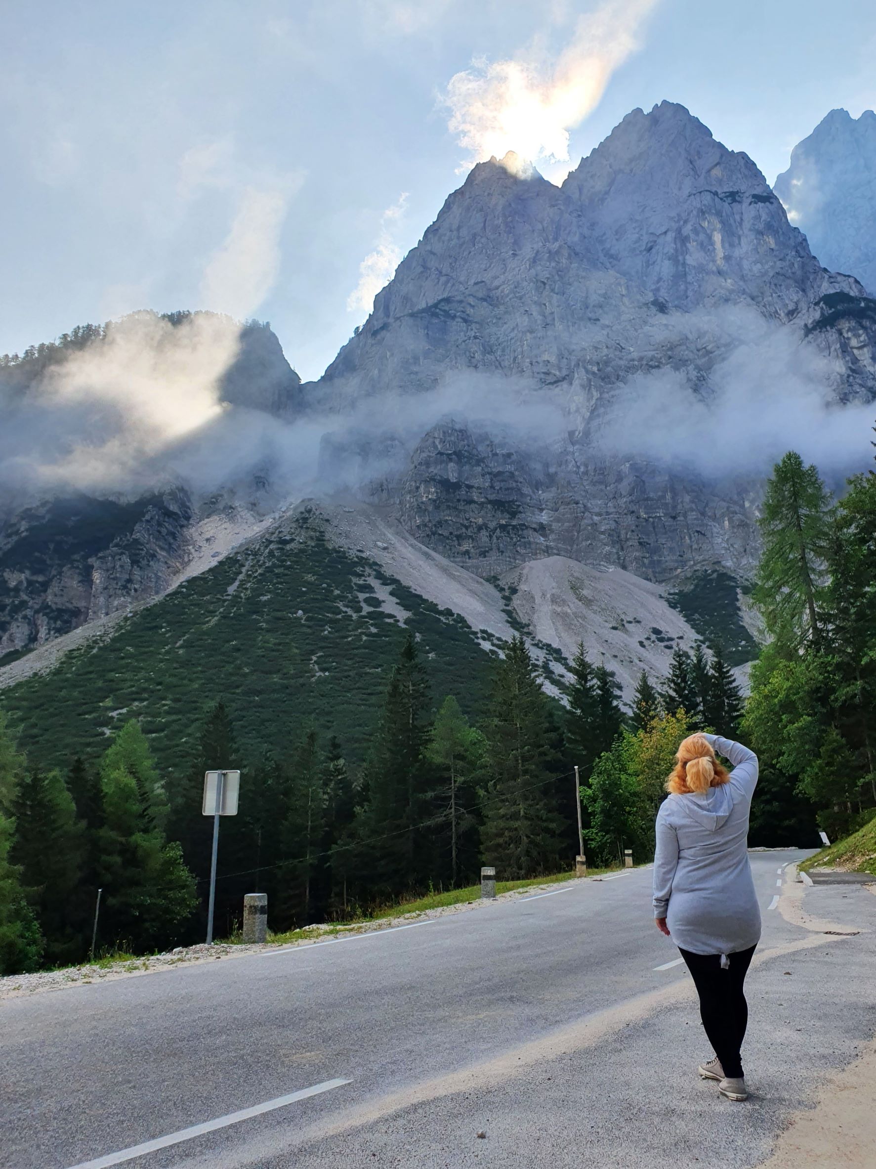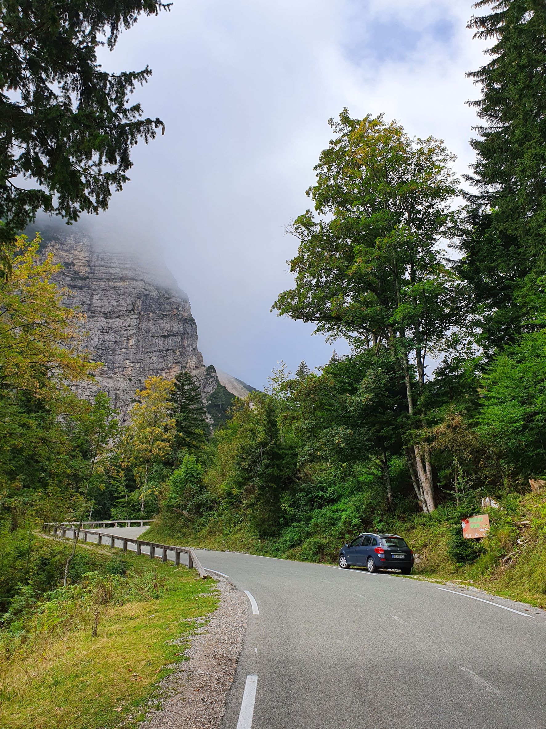 Ďalej, počas cesty hore si robíme pár zastávok, počas ktorých sa nám odkrýva neuveriteľná príroda a výhľady na krásu Triglavského národného parku a Júlskych Álp. Po zhruba 25 mierne adrenalínových kilometroch od Kranjskej Gory sa nachádzame v najvyššom bode cesty, v priesmyku Vršič. Je to pravdepodobne miesto s najväčším počtom ľudí na centimeter štvorcový v Slovinsku a ak nie ľudí, tak minimálne áut. Parkovisko je samozrejme plné áut a karavanov, kanál na okraji cesty obsadili malé autá, ktoré sa sem dokázali vyštverať, na obrovských kameňoch sa podarilo zaparkovať offroadom a zvyšné miestečka obsadili motorky. A tie najmenšie miesta bicykle. Naše malé kombi do tohto konceptu parkovania akosi nezapadá a tak pokračujeme ďalej. Ale nezúfame, pretože náš cieľ nebol samotný priesmyk Vršič, ale najmä prejazd touto nádhernou horskou cestou. Z priesmyku teda klesáme do úchvatného údolia rieky Soča až k mestu Bovec, kde Road 206 končí.