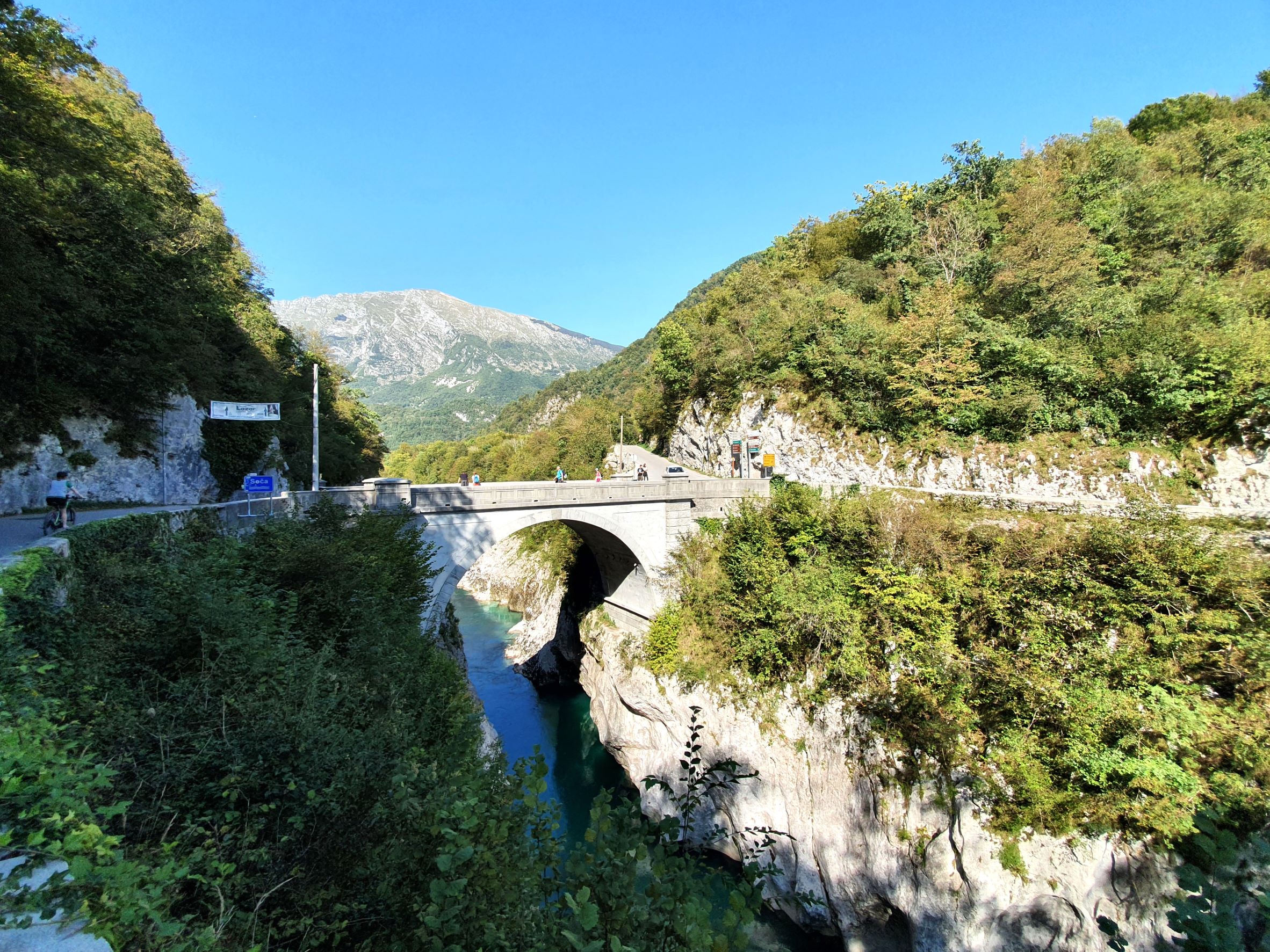 Približne 30 kilometrov južne od koryta rieky Soča leží nenápadné mesto Kobarid, pri ktorom sa nachádza známy most Napoleons Bridge. Toto je miesto, kde v 18. storočí Napoleon postavil drevený most, ktorý ale vyhorel. Odvtedy sa tu mosty budovali, počas vojny búrali a opäť budovali... Dnes tu stojí betónový most, nazvaný po slávnom Napoleonovi a spoločnosť mu robí znovu atraktívna rieka Soča. Z tejto oblasti Júlskych Álp samozrejme vedie množstvo chodníkov, výšľapov a zaujímavých trás vhodných na turistiku. Po skvelom obede v Kobaride sa presúvame ešte južnejšie, do dediny Kanal ob Soči, ktorá leží takmer na hraniciach Talianska a údajne ide o jednu z najčastejšie fotených dedín v Slovinsku.