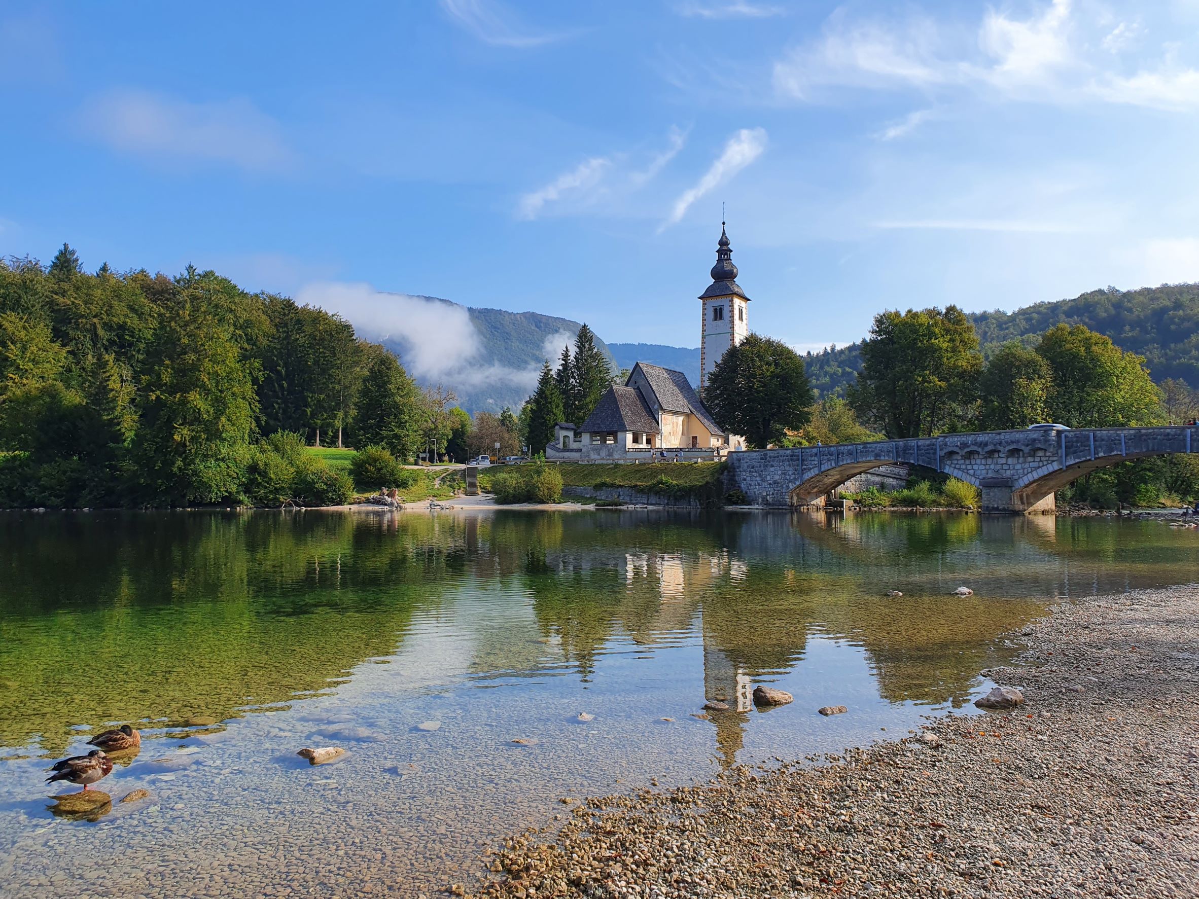 Bohinjsko jazero je ľadovcové jazero, ktoré je vďaka svojej rozlohe najväčšie v Slovinsku a dosahuje hĺbku úctihodných 45 metrov. Nájdete ho na okraji Júlskych Álp, v Triglavskom národnom parku. Okolo celého jazera vedie chodník, po ktorom sa dá celé obísť. Na jeho brehoch sa nachádza viacero dedín. Za zmienku stojí napríklad dedina Ribčev Laz. Je to viacmenej spleť horských hotelov, no medzi turistami tu žije aj pár domácich. Vedľa hlavnej cesty, kúsok od brehu jazera sa nachádza zaujímavá socha štyroch horolezcov, ktorí ukazujú na najvyšší vrch Slovinska, Triglav. Ten je pri ideálnom počasí z tohto miesta nádherne viditeľný a sú to prví štyria horolezci, ktorým sa ho podarilo zdolať. Určite sa oplatí vidieť aj ikonický kostol jazera Bohinj, Cerkev sv. Janeza Krstnika, v ktorom sa nachádzajú starobylé a veľmi vzácne fresky.